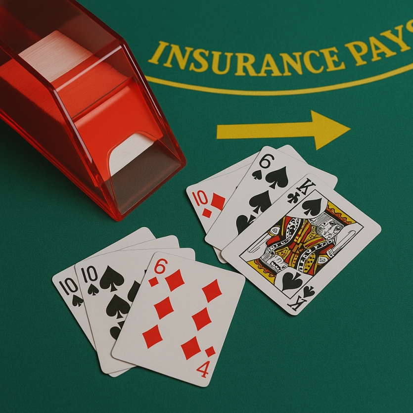 새 슈 초반에는 카드 분포에 대한 정보가 부족하므로, 보험 베팅은 피하는 것이 좋습니다.