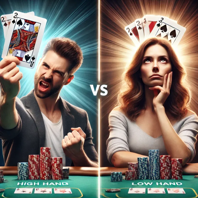 포커에서 하이 핸드(High Hand)와 로우 핸드(Low Hand) 비교